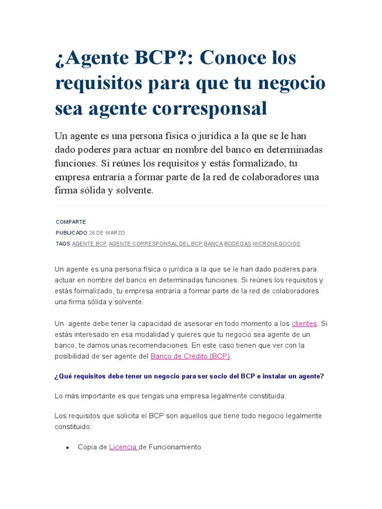- ¿Qué se necesita para trabajar en un agente BCP?